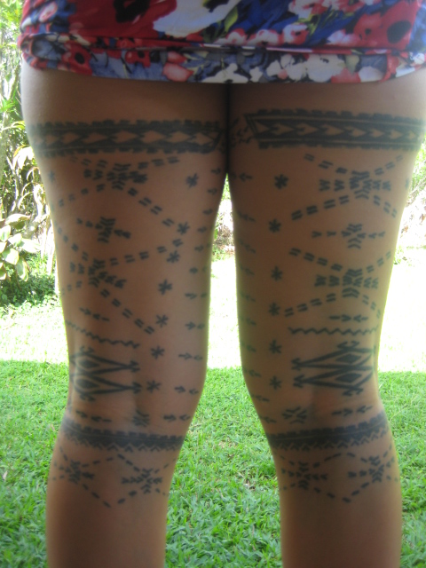 I got it done in Savaii, by a tufuga named Loli Keli Sua. I think he was a student of the old man Suluape. Yes I had a say in my design, so I said "ia pule a oe i le mamagu e fai" haha. I can't complain though – it's imperfect but so am I heh. I thought that might be her malu, I saw it once before and thought it looked fantastic…not to mention she has the gorgeous legs for it. Coconut Girl