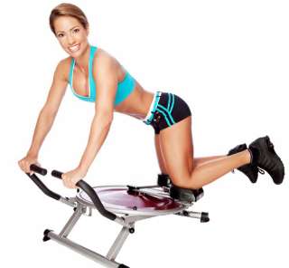 4. Get on Ab Circle Pro machine. Begin swinging motion of lower body. Stick out chest like fitness celebrity Jennifer Nicole Lee. Smile.