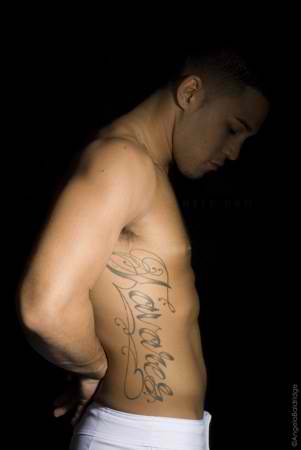 And running down his right side is some more ink. This time its his name and it is a beautiful piece of tattoo artistry…