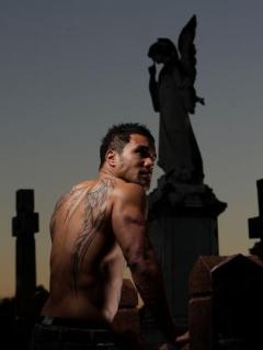Last week, some super fabulous, super famous rugby players came out to support the Brisbane Launch of the Telesa book. It was great to have their vote of confidence for this fiery Pacific novel so of course, we should have one of them for our Tattoo Time Feature. Sometimes it’s a little tricky to find photos of the chosen individual – that adequately highlights their tattoos. That was not a problem with this week’s feature, Digby Ioane. Rather the issue was trying to decide WHICH photos to choose. Digby who’s been called ‘the Dark Angel of the rugby field’ is a NZ-born Samoan who plays professional rugby in Australia.
