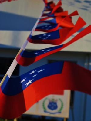 | Flags flying in Samoa for Independence. Photo by Leone Samu. |