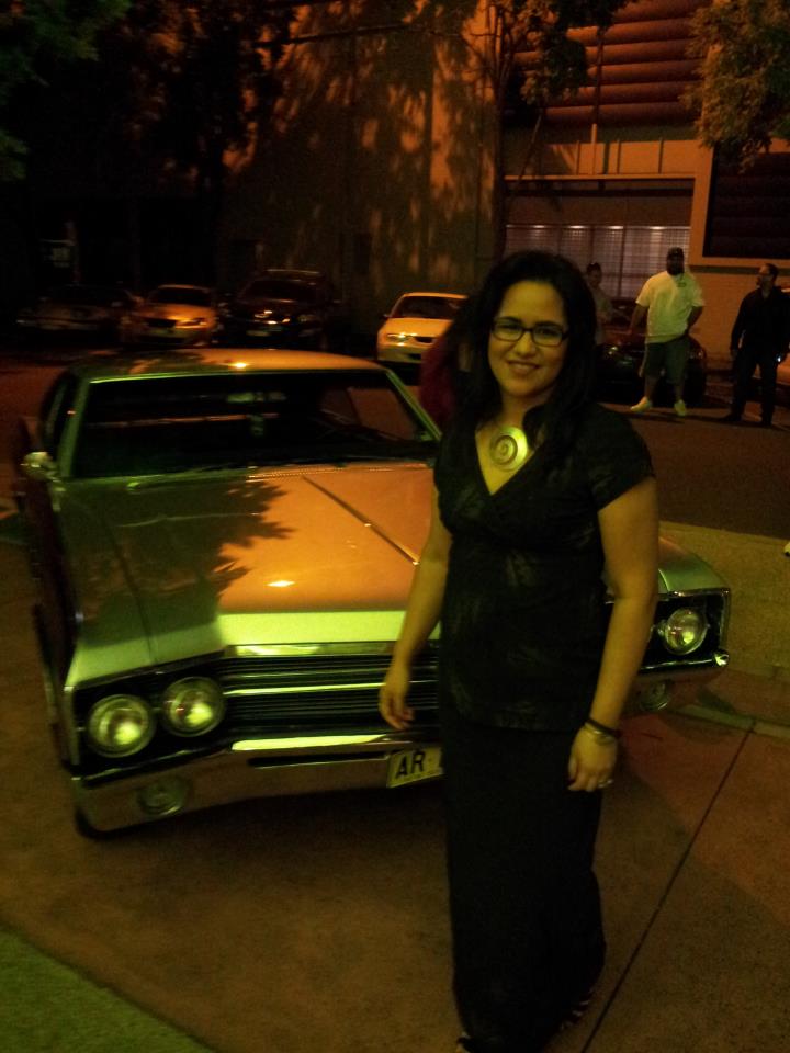 2. You know those super-cool cars that rappers (and gangsters and mobsters…cough cough) drive? The ones that bounce and adjust up and down, making noises like the Transformers? They’re called ‘low-riders’ but I like the name “Flow-Riders.” Me and the Hot Man got transported to the Sydney launch in style by the Uso Car Club, courtesy of Poreta Mariner. Everywhere you go in one of these cars, people stop and stare. And when you pull up to a red light and the driver starts making the car do that UP-DOWN move, people start filming the car and cheering and getting rather excited. It was a defn first for me. I must confess tho that riding in such a vehicle is NOT conducive to fabulously styled hair because they drive with the windows down and the wind is blowing everything to bits. And the padded ceiling in the car is really low and your head keeps getting knocked about and all the hairspray in the world cant stop that hairstyle from getting messed up. I arrived at the launch party looking like a storm had swept through me….